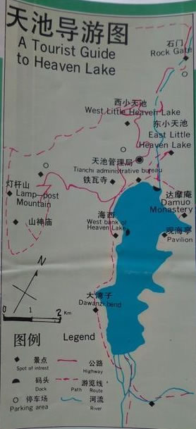 達摩險徑:從大天池北岸循左側一條向東延伸的路向前數百米可見一個船塢,沿東岸小路向南、徒步半小時許便可到達娘娘廟游覽區(qū),途中能夠看到左側有一條從出水口到達摩洞的山徑,彎彎曲曲、細又長,非常危險、很少有人涉足,相傳是由達摩所開辟的。