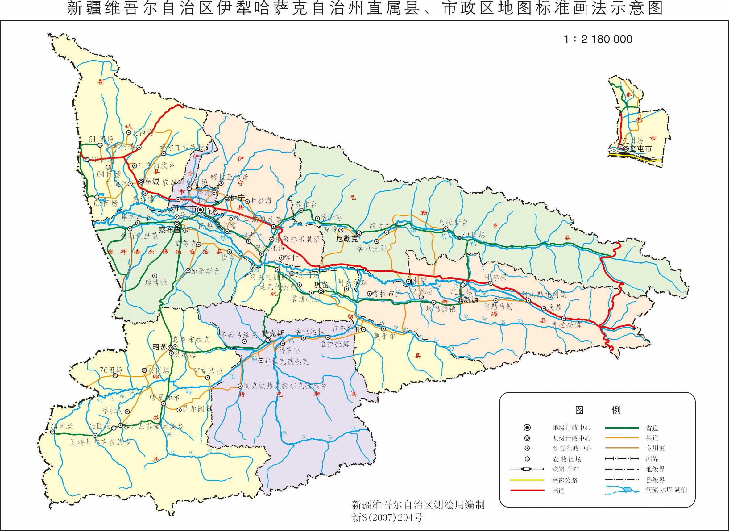 察布查爾錫伯自治縣 面積4469平方千米,人口192922,政府駐察布查爾鎮(zhèn),下轄7個鎮(zhèn)、6個鄉(xiāng)