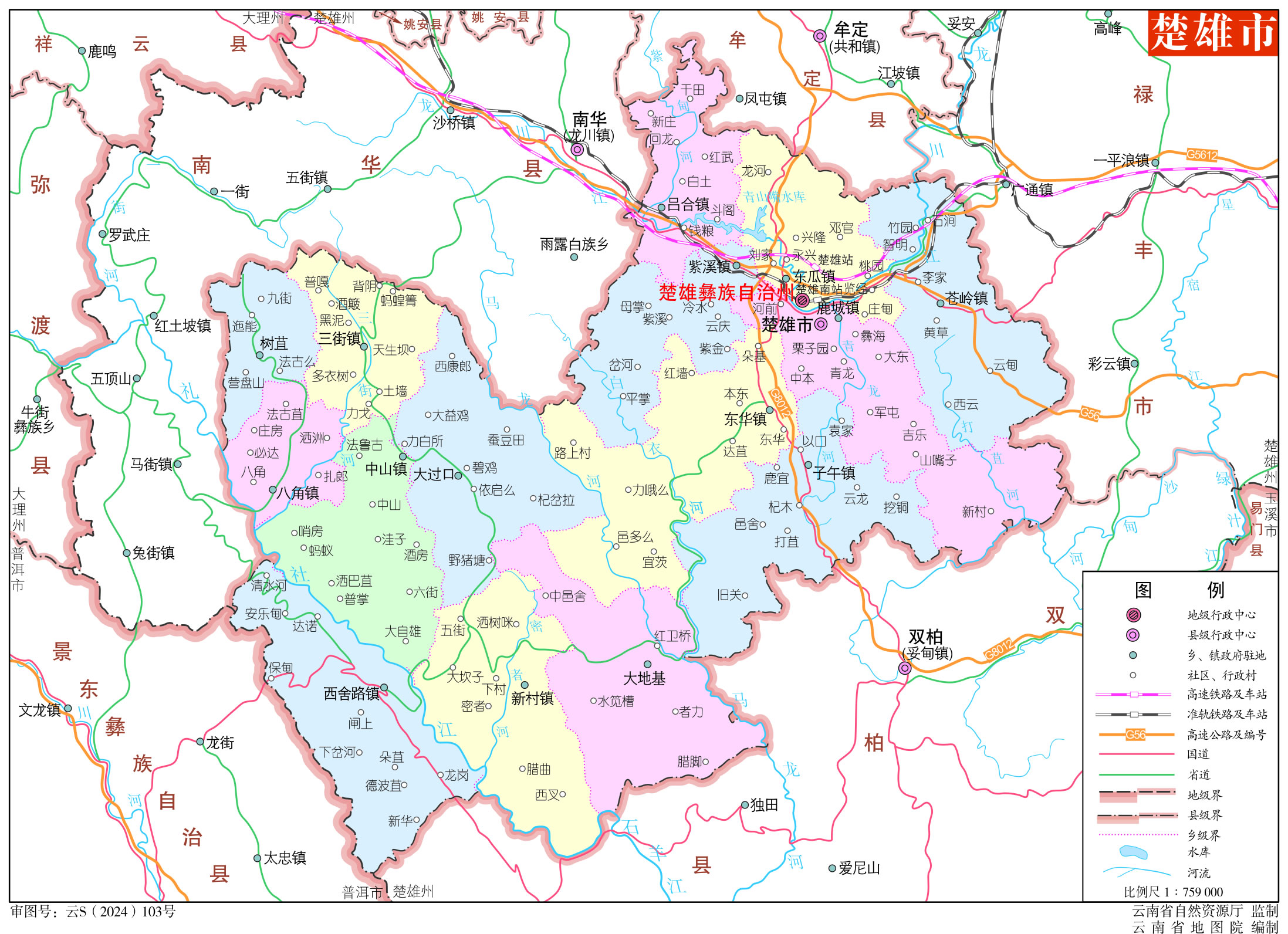 楚雄市轄12個(gè)鎮(zhèn)、3個(gè)鄉(xiāng):