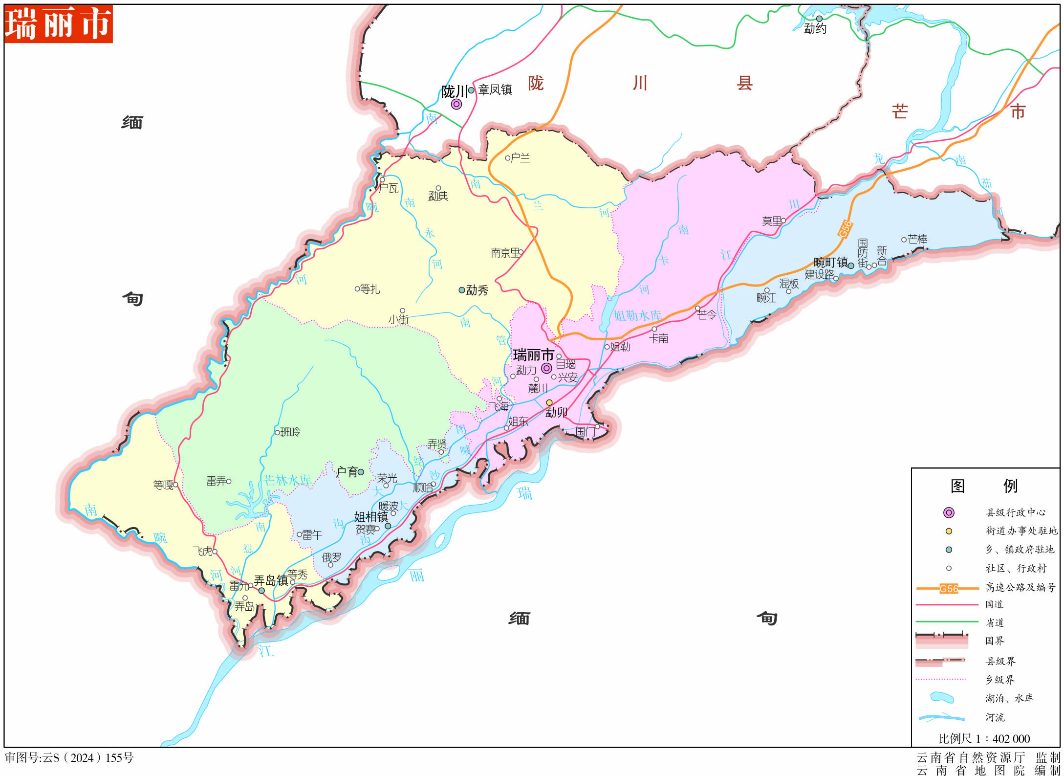 瑞麗市轄1個街道、3個鎮(zhèn)、2個鄉(xiāng):