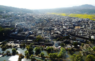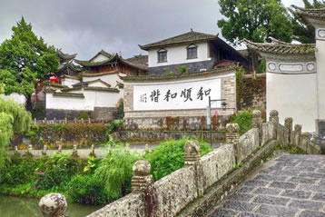 沿著西南絲綢古道,翻過(guò)巍峨的高黎貢山,走進(jìn)和順。就像走進(jìn)了一座文化迷宮。在古老的火山臺(tái)地之上,成千幢特色民居依山傍水而座,櫛比鱗次,舉手投足之間便可觸摸到斑駁的歲月和豐厚的文化氣息。無(wú)論是誰(shuí)都會(huì)由衷地慨嘆――在這極邊之地方,居然藏匿著一個(gè)如此輝煌的村落,這簡(jiǎn)直就是一個(gè)奇跡。和順鎮(zhèn)位于云南省騰沖縣城西南四公里處,四面火山環(huán)繞,山上名木古樹(shù)郁郁蔥蔥,濤聲陣陣;蜿蜒的大盈江水白練般鑲嵌在廣袤的稻浪、黃花之間,靜謐而又耀眼;一泓繞村碧水,魚(yú)翔淺底,河畔古柳如煙;濕地、龍?zhí)、峽谷,鷺鷥、野鴨、老牛,梅花、茶花、稻花,活現(xiàn)了恬靜的世外桃源。