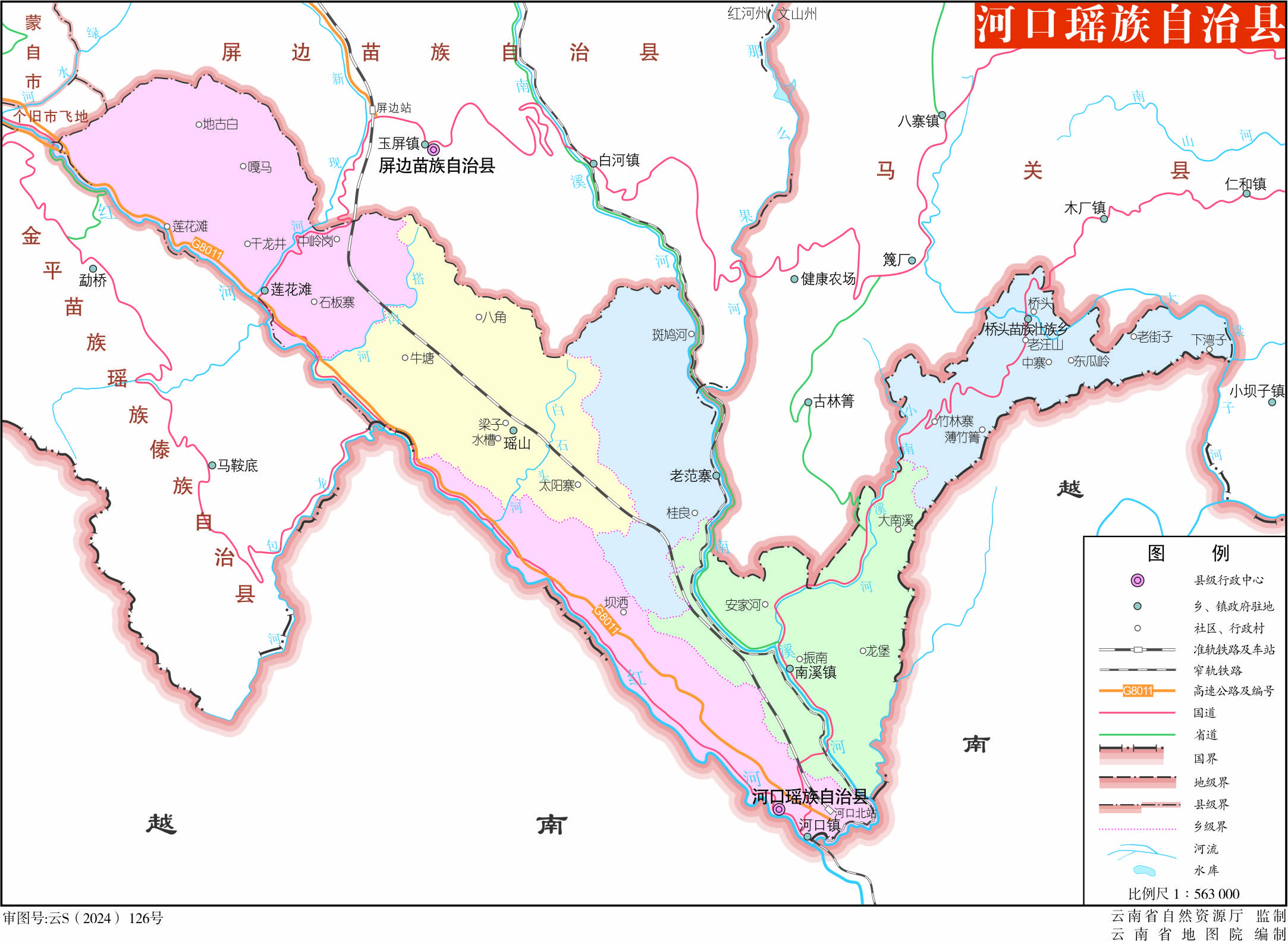河口瑤族自治縣轄2個(gè)鎮(zhèn)、4個(gè)鄉(xiāng):