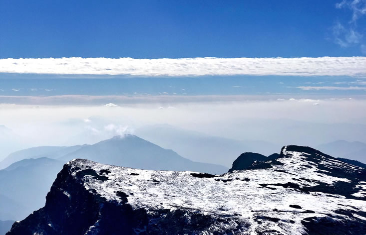 毛澤東同志“烏蒙磅礴走泥丸”的詩詞就是對烏蒙山的最好寫照。大牯牛寨山是烏蒙山脈最高峰,氣勢逼人,此山距東川城區(qū)水平距離僅9千米,海拔高差卻達(dá)2767.3米。山上巖石大都為堅硬的石灰?guī)r,呈褐色。