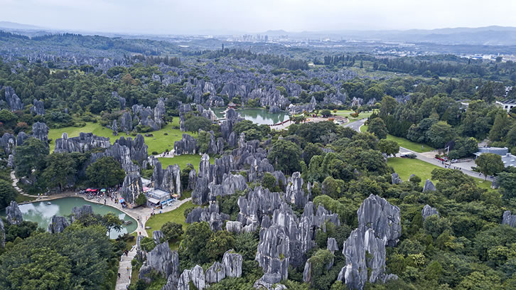 位置境域 石林彝族自治縣位于云南省東部、昆明市東南部,東南與紅河哈尼族彝族自治州瀘西縣毗鄰,東北與曲靖市陸良縣接壤,南與紅河哈尼族彝族自治州彌勒市相鄰,西北與昆明市宜良縣相連。縣境東西最寬57.3千米,南北最長58.8千米,縣域面積1719平方千米,屬昆明市所轄的遠(yuǎn)郊縣,距省會昆明78.07千米。