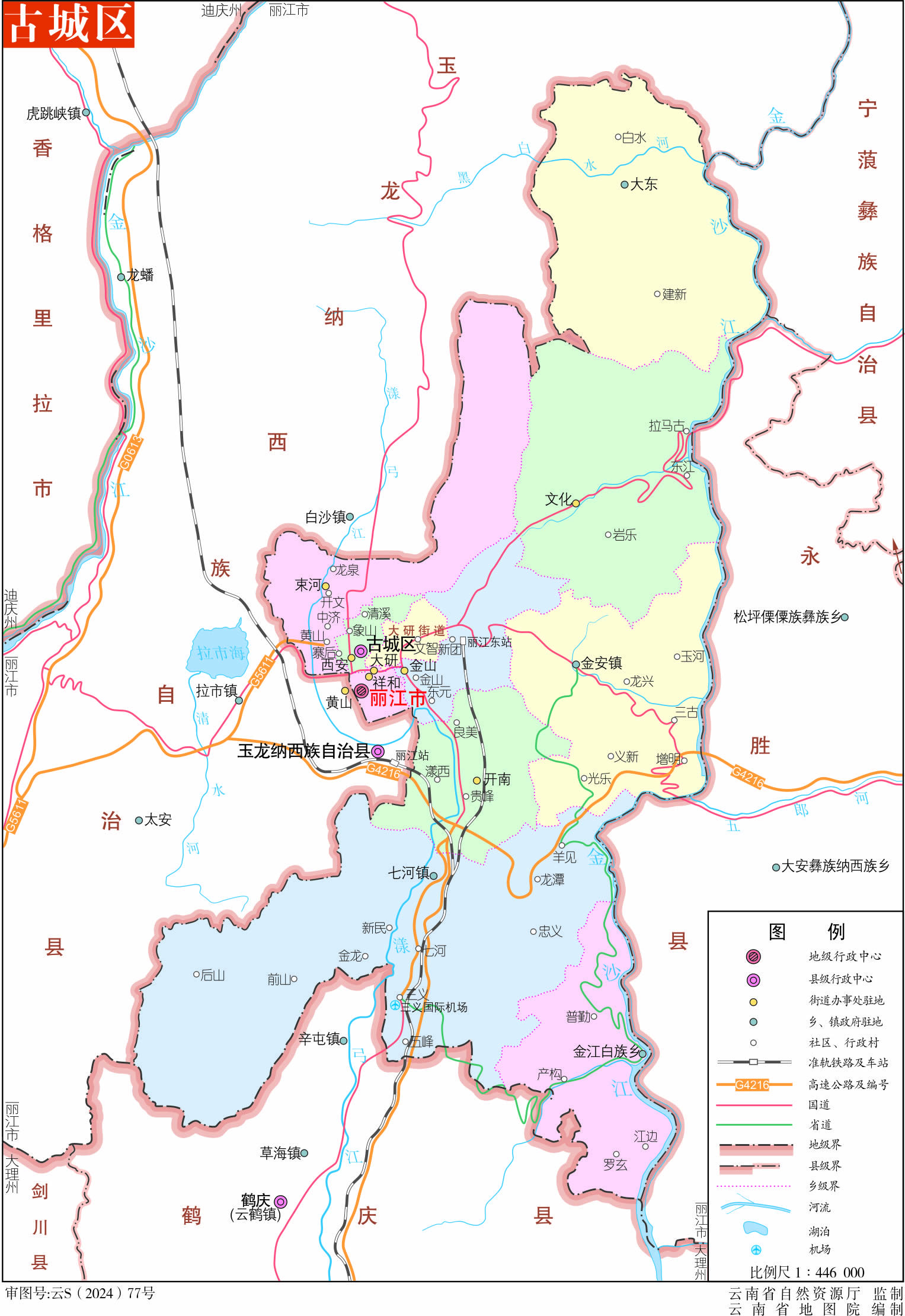 街道:西安街道、大研街道、祥和街道、束河街道、金山街道、開南街道、文化街道