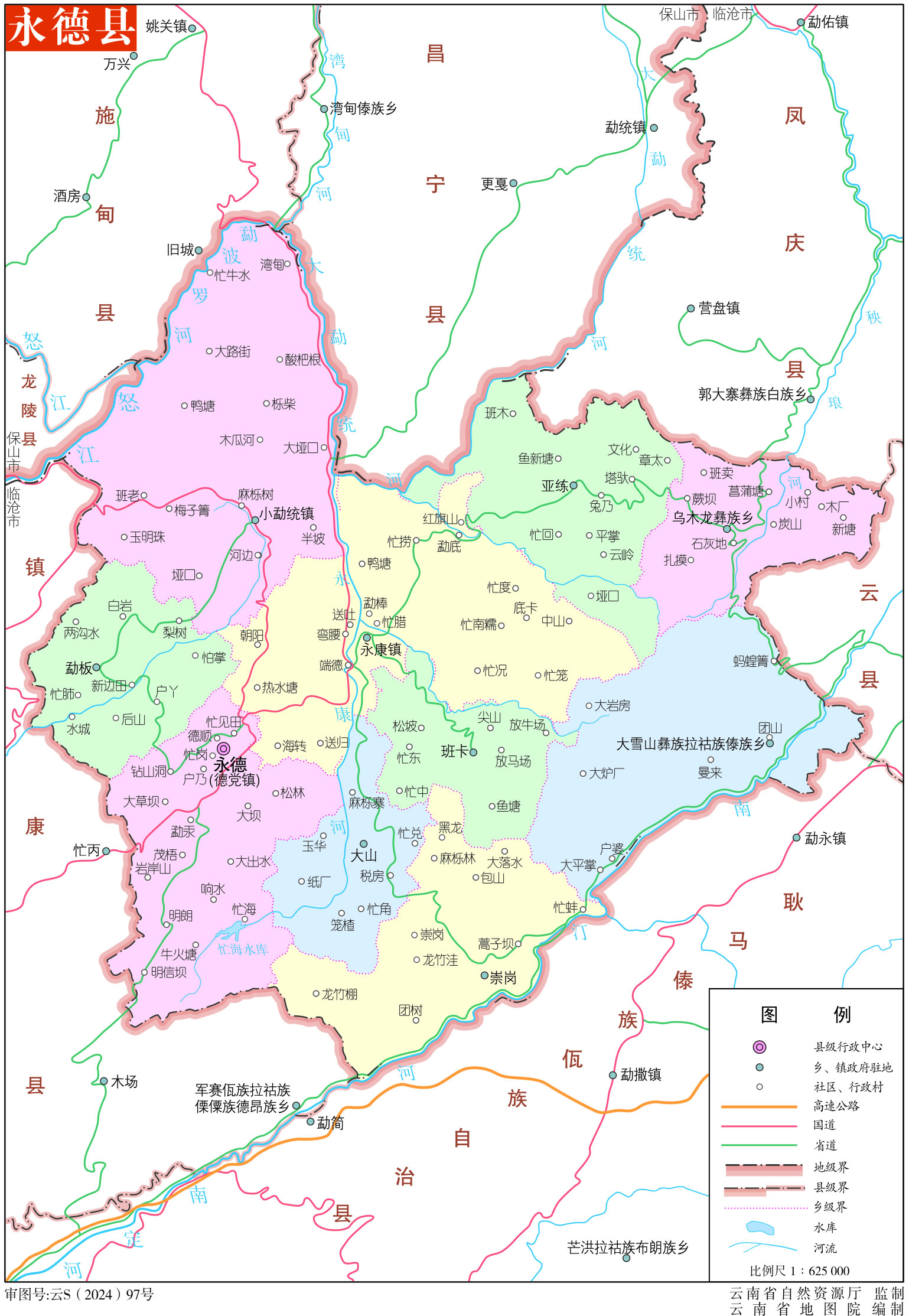 永德縣轄3個(gè)鎮(zhèn)、7個(gè)鄉(xiāng):