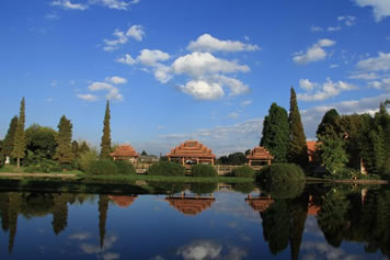 傣族寨是進(jìn)入民族村的第一個(gè)村寨,占地面積27畝,三面環(huán)水,綠樹(shù)掩映。一幢幢“干欄式”傣家竹樓,通過(guò)蜿延的紅砂石小徑聯(lián)向肅穆的緬寺。巍峨壯觀的白塔,精巧玲瓏的風(fēng)雨橋,以及風(fēng)雨亭、水井、鐘亭等建筑充滿著傣家的濃郁風(fēng)情,是傣寨真實(shí)的民間景觀再現(xiàn) 。