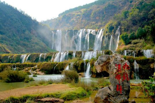 羅平九龍瀑布群,是國(guó)家AAAA級(jí)旅游景區(qū),位于云南省羅平縣 城北22公里處。由于特殊的地質(zhì)構(gòu)造和水流的千年侵蝕,在此形成了十級(jí)高低寬窄不等,形態(tài)各異的瀑布群,其中最大的一級(jí)寬112米,高56米,氣勢(shì)恢宏,蔚為壯觀,號(hào)稱九龍第一瀑。九龍瀑布群因其瀑布眾多,景點(diǎn)密集而形成其獨(dú)有的觀賞特點(diǎn),一年四季美景不斷,素有“九龍十瀑,南國(guó)一絕”的美譽(yù)。九龍瀑布,因發(fā)源于九龍河而得名。河水從白臘山背后的群山中奔涌而來,哺育著羅平大地上的各民族兒女。九龍瀑布是九龍河上最具盛名的大瀑布群,當(dāng)?shù)夭家雷迦罕娨幌蚍Q之為“大疊水”,人們習(xí)慣稱之為“九龍瀑布”。大小十級(jí)瀑布,或雄偉、或險(xiǎn)峻、或秀美、或舒緩,無以倫比美不勝收。