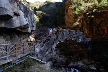 古代的文人墨客雖然游了石門關(guān),但卻不能進(jìn)入石門關(guān)縱深之處游覽,李元陽驚呼石門內(nèi)“忽驚飆從空中飛墜,聲如訇雷,凜乎不可留,從者扶挽而出!毙煜伎涂疾斓绞T關(guān)口嘆道:“但門以內(nèi)則石崩水涌,路絕不通,乃復(fù)上就北岐躡磴”。二位先賢不能進(jìn)入石門縱深游覽,不能說不是一種遺憾。隨著歲月的流逝,歷史的滄桑巨變,現(xiàn)代人能隨心所欲進(jìn)入石門縱深探幽走險(xiǎn),實(shí)在是一種福份。