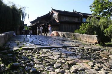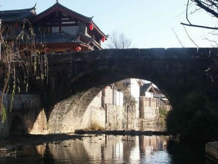 長25米、寬4.5米、高4米,全部由石塊壘砌,列為麗江古石橋之最,可見束河在麗江歷史上的經(jīng)濟(jì)文化格局中所占的重要地位。青龍橋的橋面經(jīng)過數(shù)百年風(fēng)雨的洗刷使它變得斑駁蒼老,卻不失它的英雄氣勢和莊嚴(yán)厚重感,站在這里,你也許會(huì)聽見馬蹄的聲音在回響。