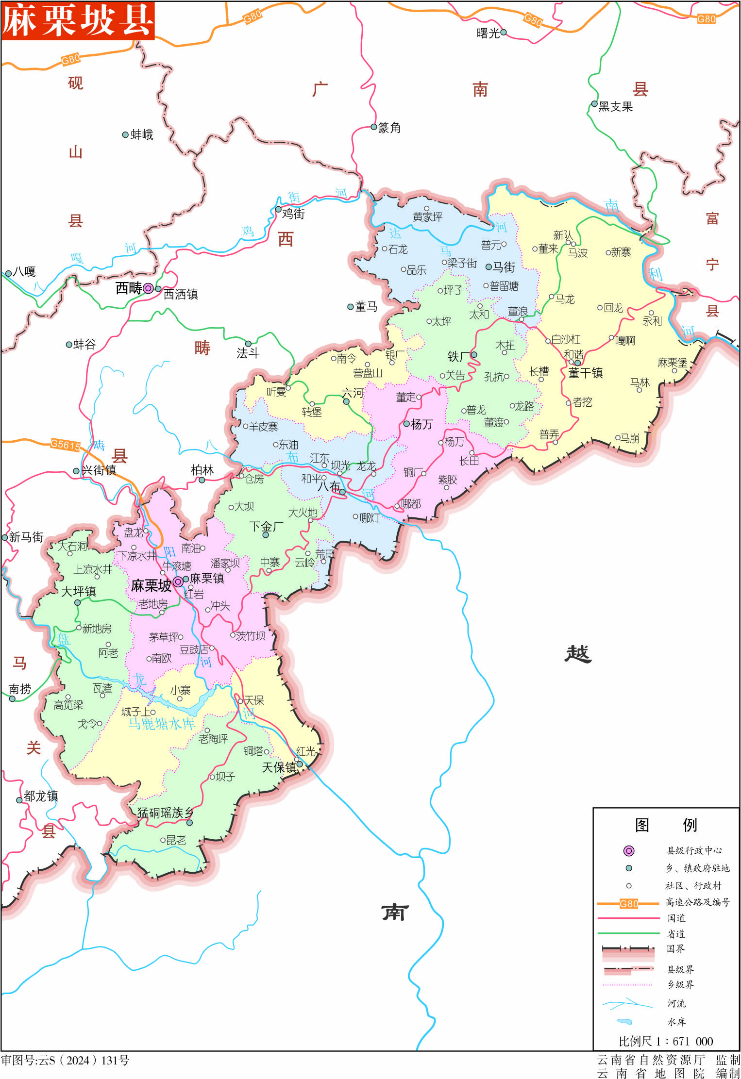 鎮(zhèn):麻栗鎮(zhèn)、大坪鎮(zhèn)、天保鎮(zhèn)、董干鎮(zhèn)