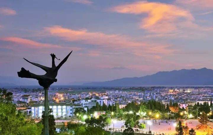 九苞鳳城,是指市區(qū)及城北的舞鳳山,土色粉紅,形同九頭丹鳳凌空翱翔。山溝梁王山的中支逼迫而來,如鳳首覽輝,左右兩山其勢(shì)如同鳳凰展翅。澂江古城,城墻高一丈九尺,方圓五華里零三分,門樓巍峨,南北的大街如書軸,東西的房屋相連,如打開的書卷,故有丹鳳銜書之稱。