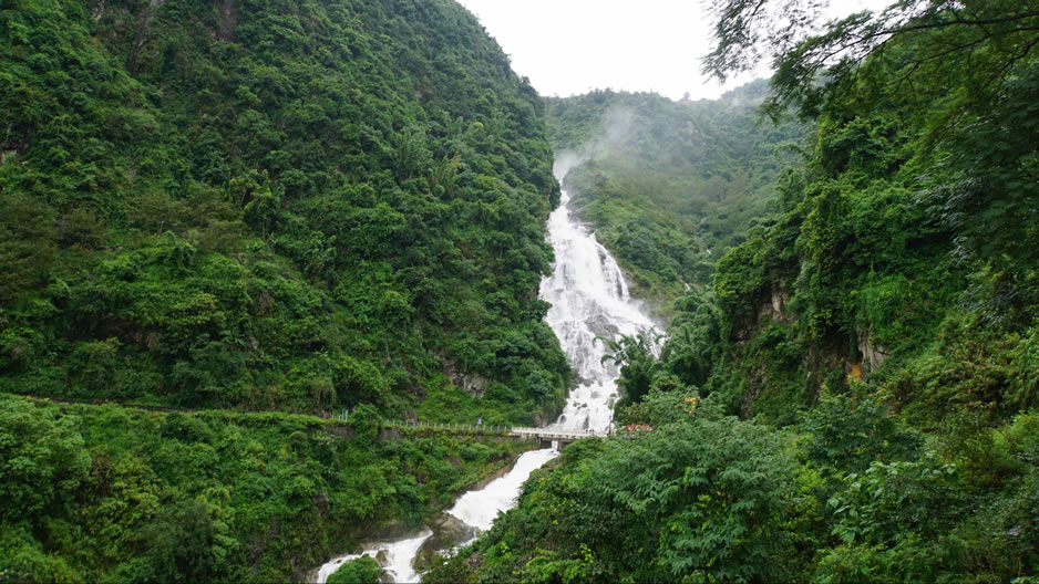 南恩瀑布位于恩水公路旁,整個瀑布群分布在巨大的巖石板上,最寬處十余米,落差達(dá)100米。