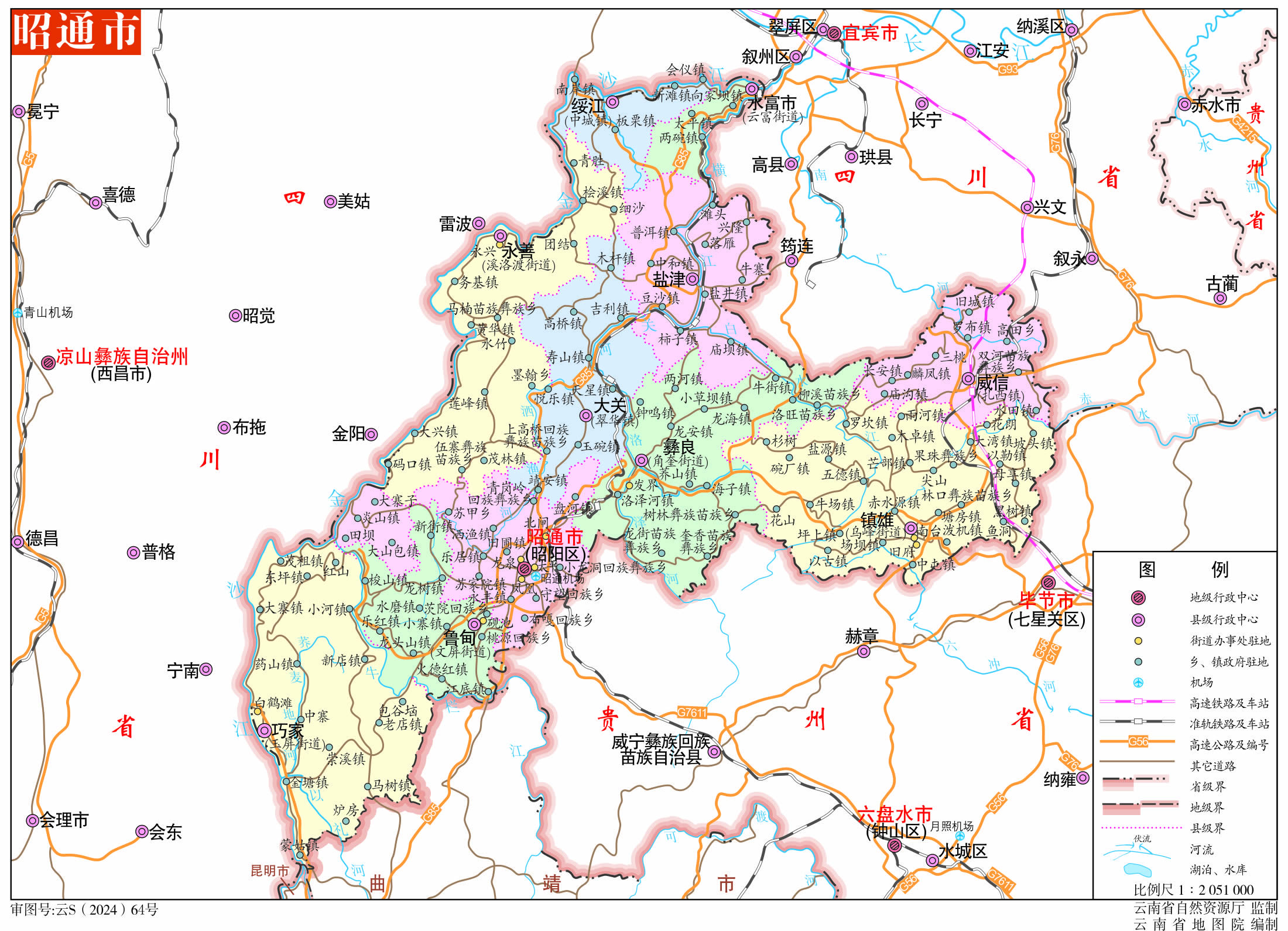 昭通市位于云嶺高原與四川盆地的結合部,東側緊鄰貴州省畢節(jié)市,南側緊鄰云南曲靖市,西側緊鄰四川涼山彝族自治州以金沙江為界相鄰,北側緊鄰四川宜賓市以金沙江為界相鄰,面積2.3萬平方千米。
