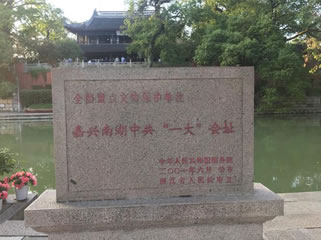 民國10年(1921)8月初,中國共產(chǎn)黨第一次全國代表大會在南湖的一艘游船上閉幕,宣告中國共產(chǎn)黨成立。從此,南湖成為光榮的革命紀念地,載入了革命史冊。1959年10月1日,南湖革命紀念館成立,以湖中煙雨樓作為館址,按照當年中共“一大”代表乘坐的游船樣式仿制的革命紀念船,陳列在煙雨樓下萬福橋旁,從那以后,每年有數(shù)十萬游客前來瞻仰,接受革命傳統(tǒng)教育。1985年,鄧小平為南湖革命紀念館題寫?zhàn)^名。建國以來至1990年,許多黨和國家領(lǐng)導人如董必武、郭沫若等都曾來南湖視察、游覽。
