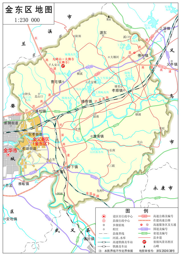 金東區(qū)轄2個街道、8個鎮(zhèn)、1個鄉(xiāng):