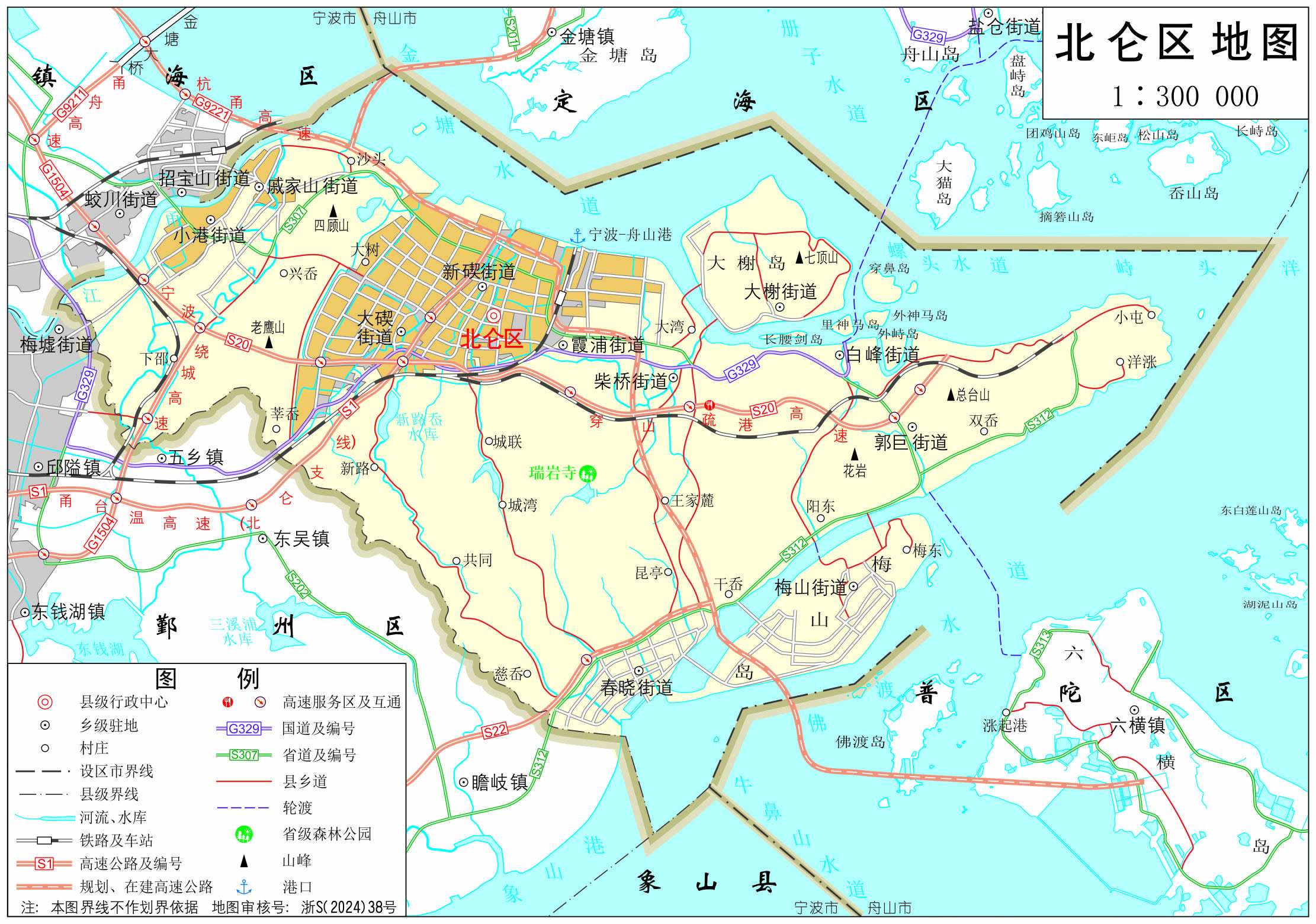 街道:新碶街道、小港街道、霞浦街道、大碶街道、柴橋街道、大榭街道、戚家山街道