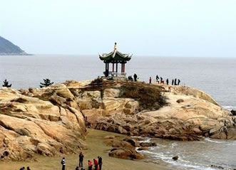 位于佛國山門東南約300米處。灘上有“闊十余米,長百來米,小石自相零附,兩側(cè)錯列巨細(xì)不一、形狀各異的巖石”,有些石上鐫有“短姑古跡”等字樣,出沒于潮汐浪濤之中,成為舊時的天然船埠。船到短姑道頭邊,可是靠不了岸,還得用長不過一丈、寬不過三尺的小舢板擺渡。清光緒三十一年(1905年),普陀山住持了余、蓮禪二僧因潮落潮漲,往來船只靠岸不便,遂募資用巨石壘成長達(dá)11米,寬8米的石條道頭。在未建普陀山客運(yùn)碼頭之前,凡前來普陀山參禮進(jìn)香、攬勝觀光者,都得由此登岸。