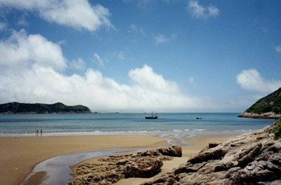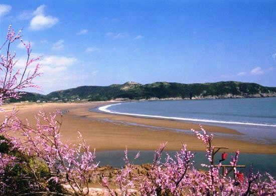 千步金沙——長1370米,寬400余米,從面積來說,是舟山群島第二大沙灘。從沙質(zhì)方面來書是進行海浴、沙浴、陽光浴和沙灘漫步較理想、優(yōu)質(zhì)的沙灘。千步金沙屬細型沙質(zhì),細軟純凈,與普陀山的白步沙、千步沙和嵊泗的基湖沙灘相比較要細軟得多,與朱家尖的東沙、南沙相似,但還要松軟一些,且沙灘上沿有部分植被覆蓋,這一點其它沙灘是很難找到的。