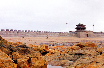 定海城——位于鵓鴣門后門沙灘上,是電影《鴉片戰(zhàn)爭》舟山攝制地主要景點之一,《鴉片戰(zhàn)爭》定海保衛(wèi)戰(zhàn)是整部電影的高潮,戰(zhàn)斗場面悲壯激烈,表現(xiàn)中國人民不屈不撓的精神。整個城墻長230米,寬12米,最高處12米,設城樓、古炮位、箭垛、旗桿等設施,飛檐翅角,黑瓦紅墻,整座城墻古樸典雅,雄偉壯麗。