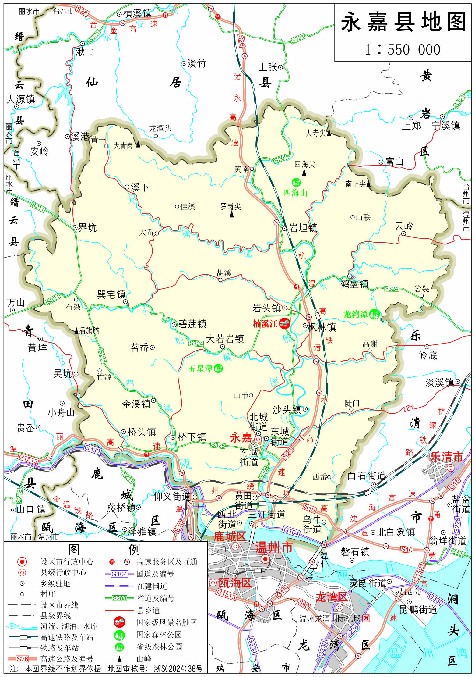 永嘉縣轄8個街道、10個鎮(zhèn):