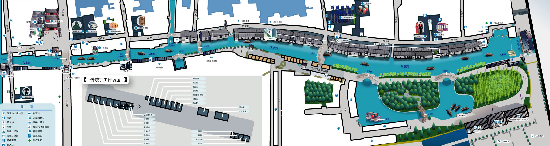 東柵區(qū)景區(qū)面積宏大,景色清幽秀美,景區(qū)游程2千米左右,由東柵老街、觀前街、河邊水閣、廊棚組成,置身東柵可深入感受江南水鄉(xiāng)特有的清幽婉約的氣息。